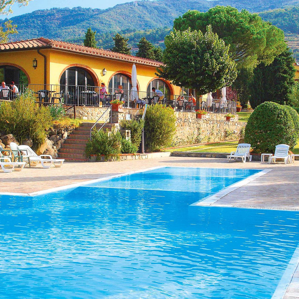 each of the 70 guestrooms is splendidly furnished in classical Tuscan style, with a scenic balcony or outdoor living area equipped with tables and chairs. The restaurant combines traditional recipes with inviting and innovative dishes, served in the property’s rustic former winery. While enjoying the delicacies of typical Tuscan cuisine, guests can enjoy the hotel’s own home-grown red and white wines, as well as the top wines from all over Italy. The Residence also features three swimming pools (including one for children), tennis, a riding school, two lounges and a wine bar.